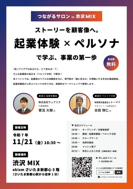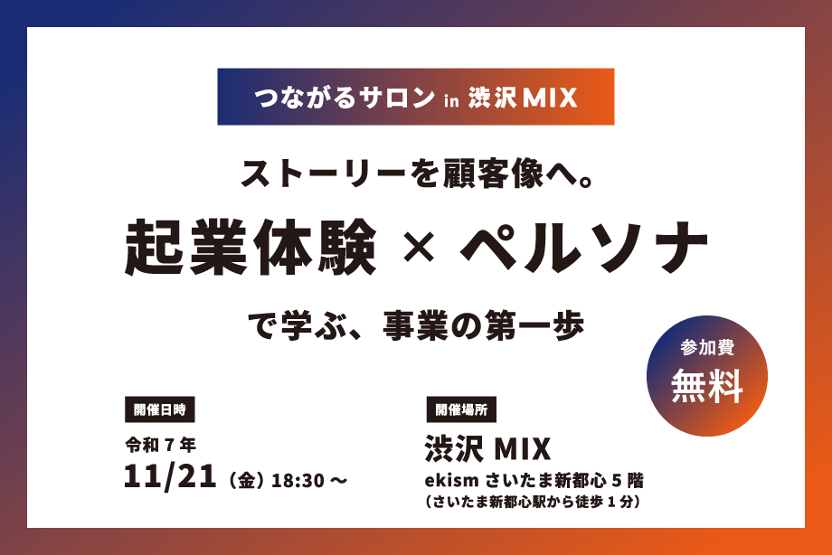 - 【会場】渋沢MIX(埼玉県さいたま市大宮区吉敷町4丁目262番18 ekismさいたま新都心 5階)